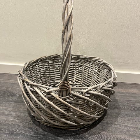 Detta är en IKEA BYHOLMA förvaringskorg i flätad rotting.