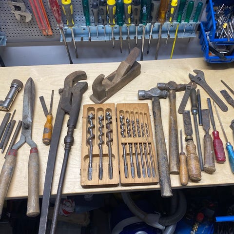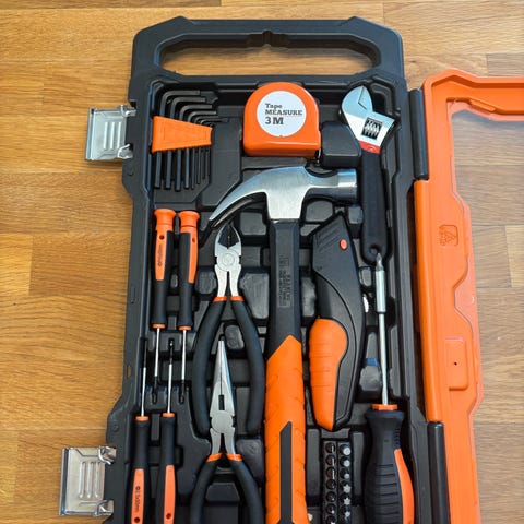 Lednycklar ,mejslar, skruv. röravskärare. Tumstock, glasögon, sexkantnycklar, (EJ LÅDAN!)