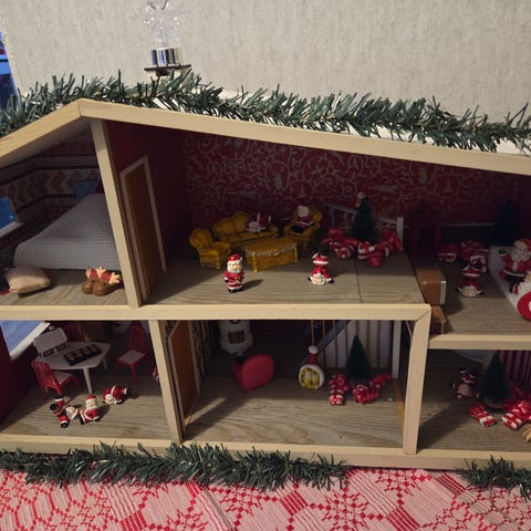 Säljer ett dekorativt Muminhus i papp/kartong som använts som skyltmaterial.