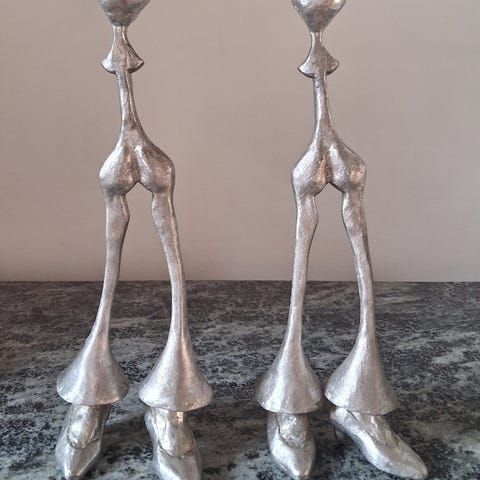 Georg Jensen ljusstakar i metall i silverfärg. Finns att hämta i Halmstad. Sparsamt använda