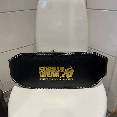 Träningsbälte i svart läder med kontrastsömmar. Bältet har flera hål för justerbar passform och kraftigt spänne. Insidan är i ljust läder för ökad komfort. Passar för styrketräning och andra träningsformer där extra stöd runt midjan önskas.