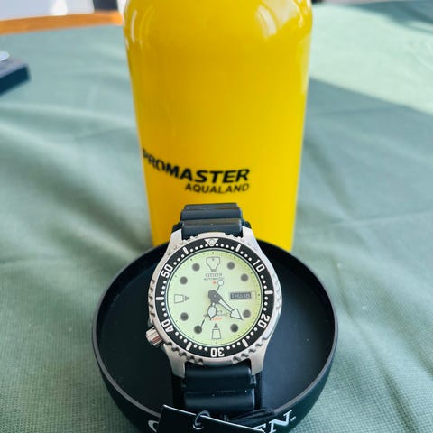 Citizen Promaster herrklocka med analog urtavla. Klockan har svart armband och levereras med originalförpackning enligt bild. Modellen är avsedd för män och passar för vardagsbruk såväl som mer aktiv användning. Exakta mått, material och vattentäthet framgår inte av underlaget och bör kontrolleras vid behov.det är en dykarklocka använd en gång.