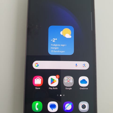 Telefonen har pekskärm på framsidan.