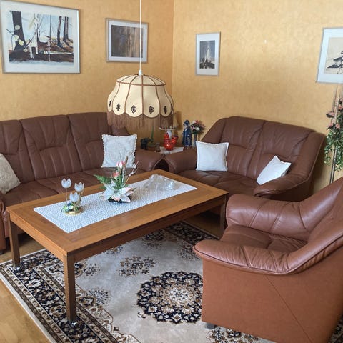 Två st soffor i mkt bra kvalitet. Kommer inte ihåg märke men har i bakhuvudet att det kanske är engelsson. Modellen är lite svängd vilket gör att det ger ett litet mjukare intryck. Inköpta för ca 15 år sedan, då för 50000:-.