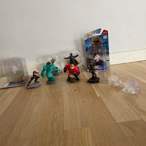 Disney infinity gubbar i ett ganska bra skick. Finns en gubbe som er ganska sliten. Men det finns två av den så det är okej. Pris kan diskuteras