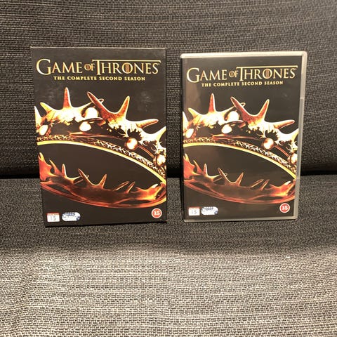 Game of Thrones säsong 1 DVD-box. Innehåller kompletta första säsongen på flera skivor. Omslag och skivor enligt bilder, med originalfodral. Lämplig för uppspelning på DVD-spelare som stödjer regionen angiven på omslaget.