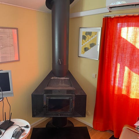 Andersen vedkamin i svart utförande, ca 25 år gammal.