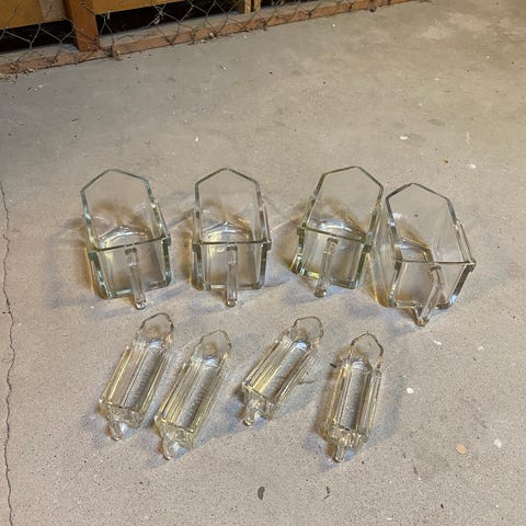 5st stora glasbehållare 13x17 cm (det som ska in i hyllan) ca 6,5x13,5 cm 250kr/st