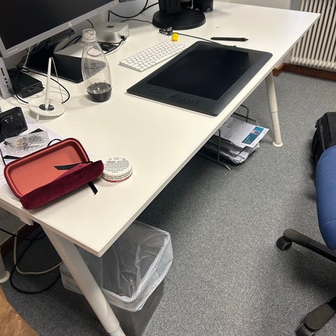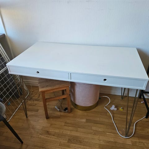 Ett skrivbord och en datorhörna bortskänkes