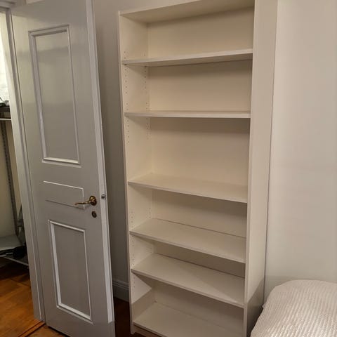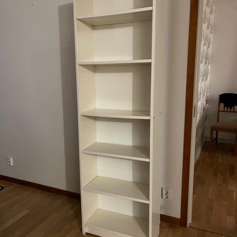 ingen baksida på den så den är vinglig , men har man tunga saker som böcker osv så står den ganska stabilt . Inget som påverkar om den bara ska stå.