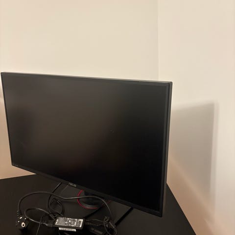 Asus TUF Gaming bildskärm med 23.8-tums skärm i svart utförande. Skärmen är avsedd för stationär datoranvändning och lämpar sig för spel, arbete och allmän datoranvändning. Baksidan har flera anslutningar, bland annat HDMI och DisplayPort (enligt märkning på baksidan). Skärmen står på ett stabilt stativ och har en design anpassad för gamingmiljöer. Passar som primär eller sekundär skärm på skrivbord.