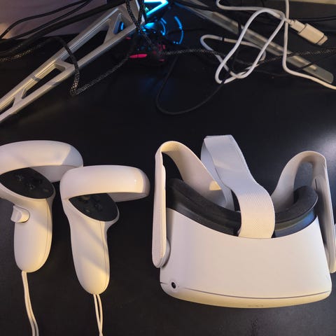 VR-headsetet kommer med två handkontroller och en VR-adapter.