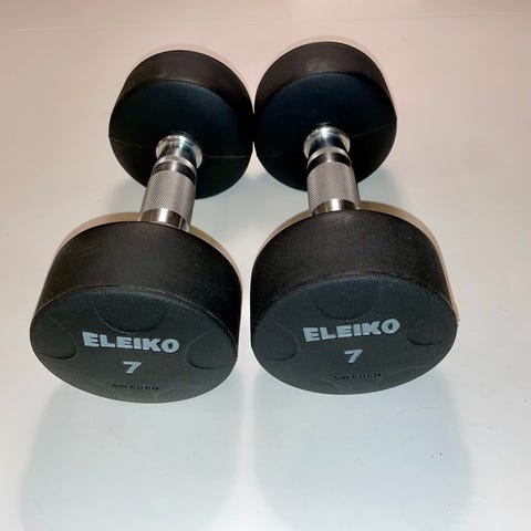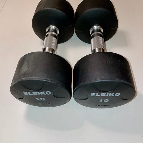 Mycket stabil ställ för hantlar / dumbbells. Slitstarka hållare i gummi med plats för 5 par hantlar.