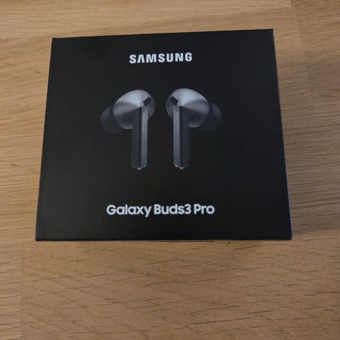 Samsung Galaxy Buds3 Pro headset. Trådlösa in-ear-hörlurar som levereras i originalförpackning enligt bild. Passar för användning med kompatibla Samsung- och Android-enheter samt andra enheter som stödjer trådlös anslutning via Bluetooth. Lämpliga för musik, samtal och vardagligt bruk.