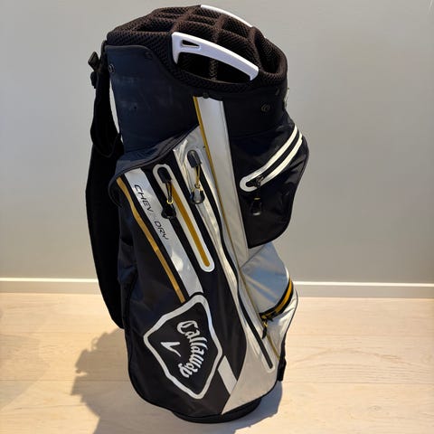 Säljer en mycket snygg och välvårdad vagnbag från Callaway REVA-serien. Bagen är rymlig med 14-delad topp för att hålla ordning på klubborna och har många praktiska fack för bollar, kläder och värdesaker.