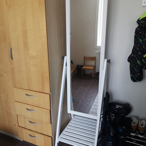 IKEA spegel. Rektangulär väggspegel med helkroppsformat som passar i hall, sovrum eller badrum. Enkel, neutral design som är lätt att kombinera med olika inredningsstilar. Nypris 1395:-