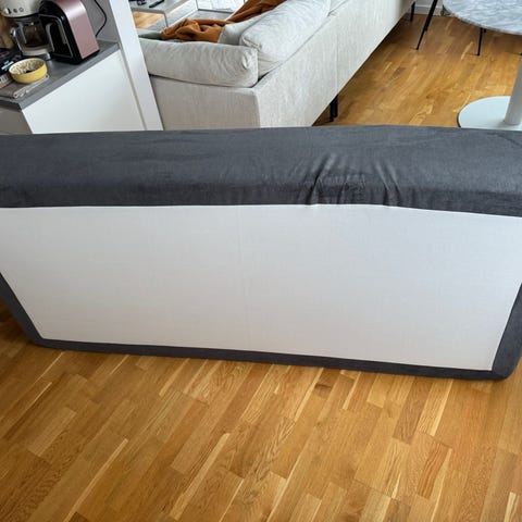 Ena sängbenets originalinfästning (gängad stav) har gått sönder och är ersatt med en gängad bult istället, men det är inget som påverkar funktionen.