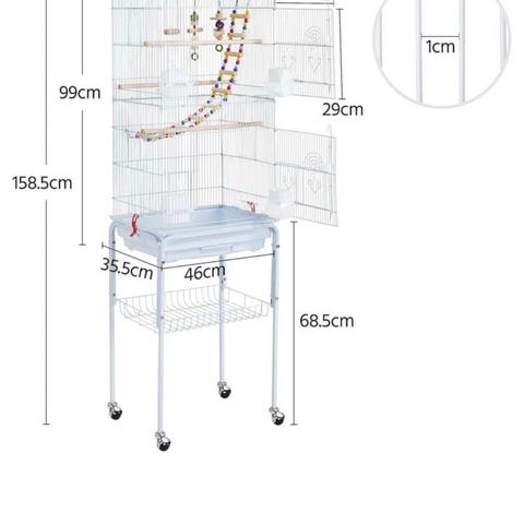 Fågelbur vit metall med tillbehör