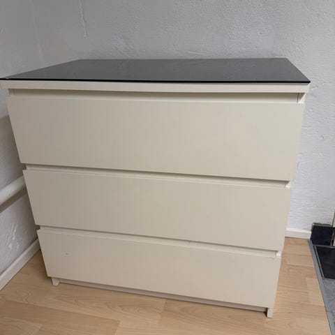 Vit byrå ifrån ikea i fint skick, finns i Halmstad.