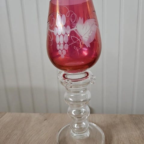 Söker 1-3 st av dessa eller liknande remmare-glas för att komplettera. Höjden på glasen är 17cm och kupan är 6cm bred vid öppningen.
