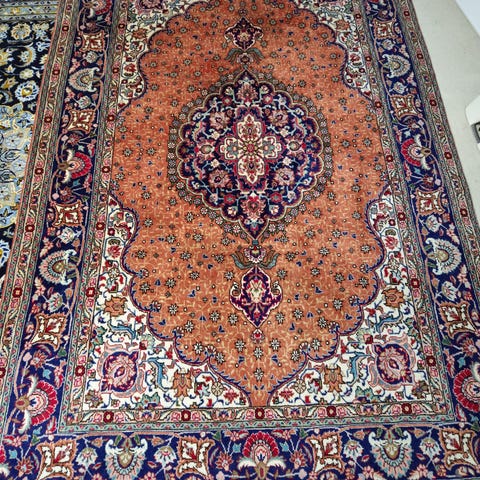 Vacker mönster handknut persisk ullmatta en gammall och riktig antik