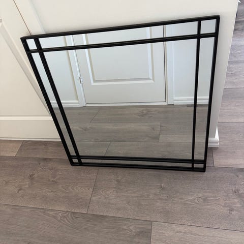 Mio spegel i rektangulär form med dekorativ ram i metall/krom. Nypris 799 kr.