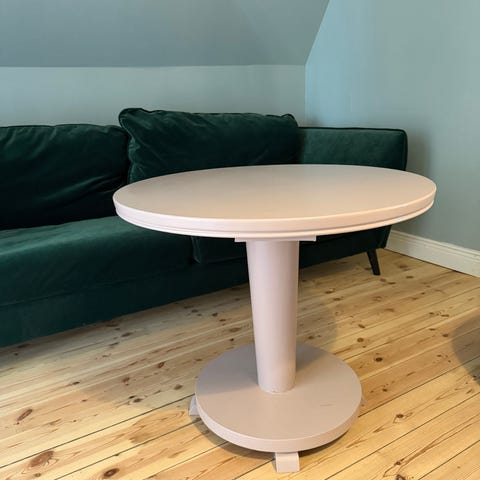 Vitt bord diameter 90 cm, höjd 73,5. Från Lammhults. Kan användas som konferensbord eller litet matbord/cafébord. Tecken på användning med små märken på fötterna som är gjorda av metall. Annars väldigt fint skick!