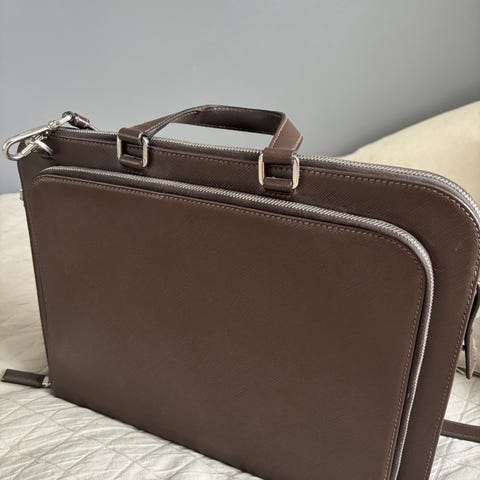 Prada datorfodral i saffiano läder i nyskick, mycket sparsamt använd. Större än A4 block och har även innerfack. Original tags och etikett medföljer mer äkthetskort.