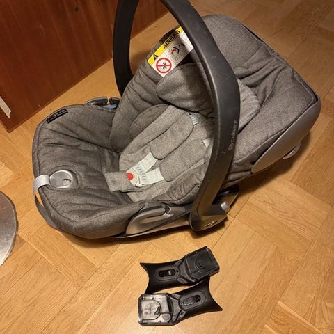 BeSafe babyskydd bilbarnstol för barn i storlek 0–13 kg. Modellen är bakåtvänd och har bärhandtag för enkel förflyttning mellan bil och hem. Sätet har vadderad insats för spädbarn, justerbar internsele och sidokrockskydd. Klädseln är i grått tyg och kan tas av för rengöring. Babyskyddet monteras bakåtvänt i bilen enligt tillverkarens anvisningar och är avsett att användas från nyfödd upp till cirka 13 kg, beroende på barnets längd och vikt.