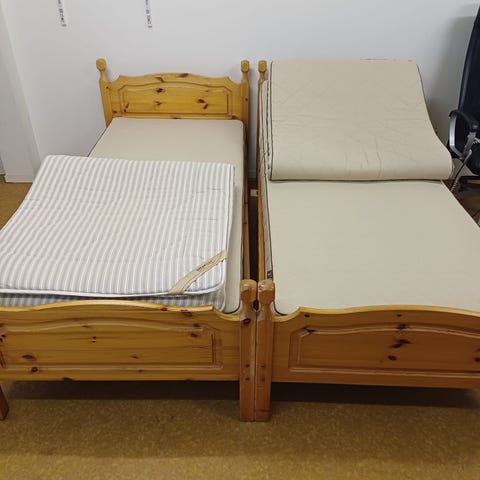 Två 90 sängar till salu, vi har haft de i stugan så de är mindre använda. Nypris 4000 tusen stycket. Jag säljer båda för 3000kr. Madrassen ingår tyvärr inte.