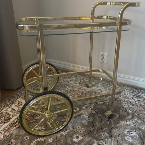 Vintage drinkvagn i mässing & glas – Hollywood Regency / barvagn