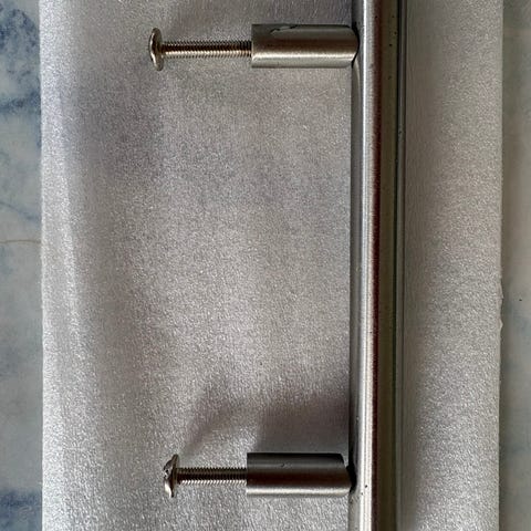 Handtag till skåp och lådor. 21 st 13,5 cm 9 cm mellan skruvar. Metallfärgade. Skickas inte.