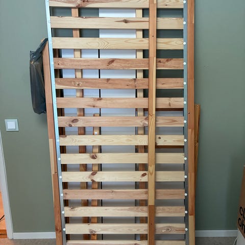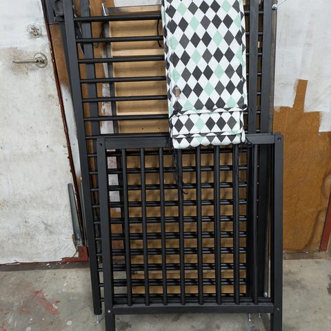 Barnsäng med räcken grå trä