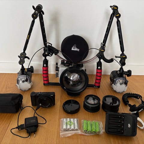 Ett undervattenshus till en Canon digitalkamera. Jag minns inte vad kameran hette. Men uv huset har beteckning WP-DC900. Jag hoppas det kan komma till nytta.