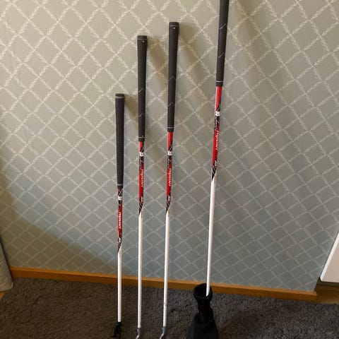 Setet består av taylormade m4 järn. Har spelats i 3 säsonger och aldrig svikit mig. Järn 7an har till och med slagit en hole in one, så den ligger mig nära hjärtat. Sitter KBS max grepp i regular styvhet. Greppen är spelade med en säsong och är i toppskick. Klubborna är bevarade väl, men finns såklart tecken på användning efter 3 säsonger.