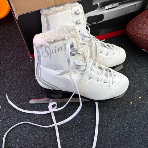 Skridskor för barn i storlek 27 och 29. Färg vit med snörning och klassisk kängmodell. Passar för allmän åkning på is, exempelvis på isbanor eller friluftsisar. Hämtas i Sollentuna
