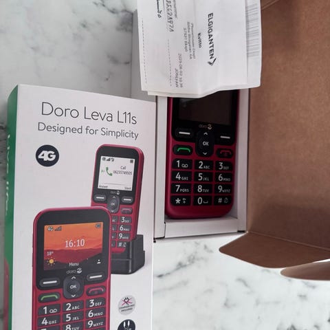 En s k seniortelefon med tydlig display och enkel i sin utformning.