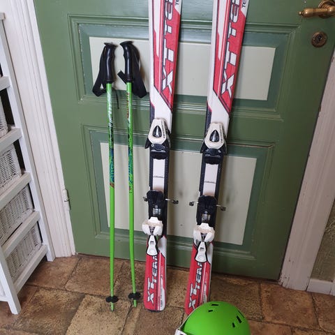 Slalomskidor med pjäxor + löparskidor med pjäxor och stavar