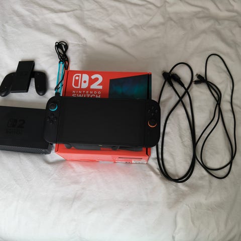 Nintendo Switch spelkonsol. Konsolen levereras med dockningsstation, strömadapter, HDMI-kabel, Joy-Con grepp, handledsremmar samt originalkartong.