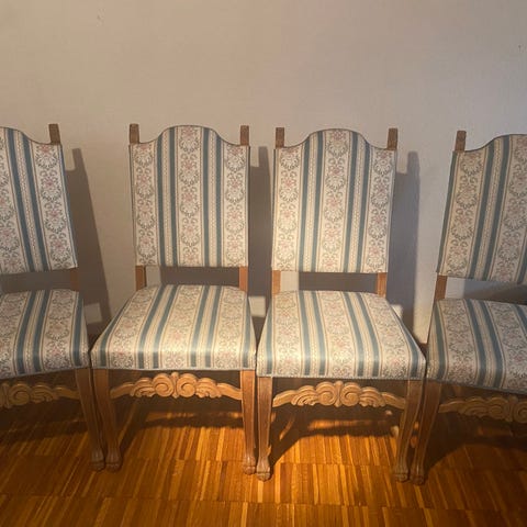 Fyra stolar, snidad ek, barockstil, 1900-tal