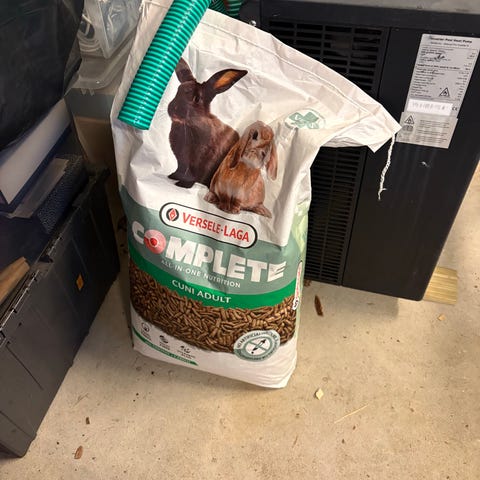 Hej, eftersom våra kaniner tyvärr gick bort, behöver jag säljer en sista påse kaninmat från Versele Laga, oöppnad.