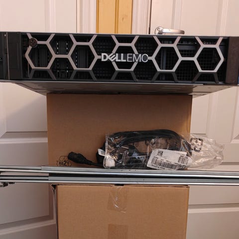 Dell PowerEdge M1000e serversystem chassi. Chassit är avsett för bladservrar och rymmer flera modulära serverenheter (blades) i samma enhet. På bilderna syns bland annat Dell PowerEdge M620-bladserver installerad i chassit.