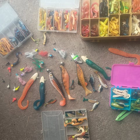 Detta är en uppsättning fiskedrag, specifikt jiggar av mjukplast,