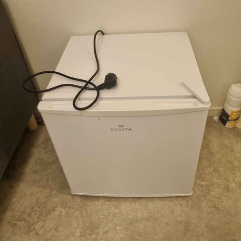 Snygg svart minikyl till gästrummet/stugan. Volym 40 liter. Storlek bxhxd: 40,5x54x44cm. Flyttbara hyllor. Belysning. 220 volt. Sparsamt använd. Är helt tyst så inga problem att sova i samma rum. Finns i Umeå! (skickas ej)