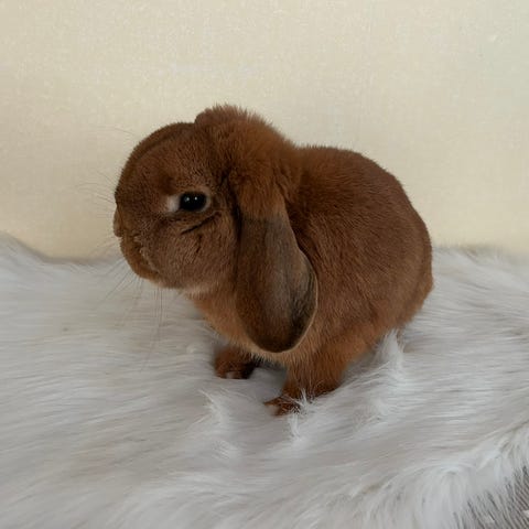 Fjällräven (han heter så🥰) som är en Miniature lop (Minilop) hane 4v. Söker sin egna familj om 4veckor då han är 8v och redo att lämna mamma.
