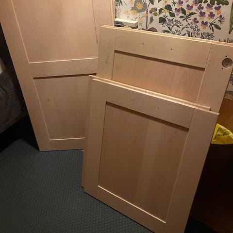 Säljer 3st oanvända luckor Sannidal 60x60 cm till IKEAs Platsa-garderober. Förborrade för handtag 128mm cc.