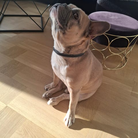 Älskar att gosa i soffan lika mycket som hon tycker om promenader och att upptäcka nya platser