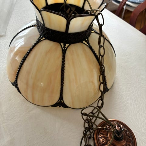 Nostalgi Kupa Retro Vintage Reklam Skylt Tak Lampa Lamp Ljus Belysning Dekorativ Dekoration Tifany Tiffani Tifani Glas Fönster Blå Sippa Gulsippa Gul