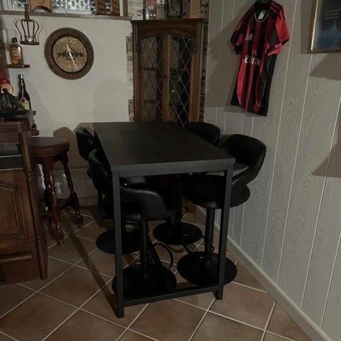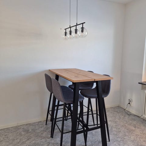 Säljer ett fint barbord med fyra stolar, allt köpt från Vidaxl. Nypriset på bordet är ca 2500 och jag hittade inte exakta stolarna men liknande kostar 700-1000 på VidaXl. Allt är i perfekt skick förutom en liten skada på en av stolarna, som man kan se på bilden. Priset ligger på 1500 för allt och kan eventuellt säljas separat, men i sådana fall kan man skriva privat. Grejerna finns i Valdemarsvik och kan skjutsas ut mot en extrapeng.
