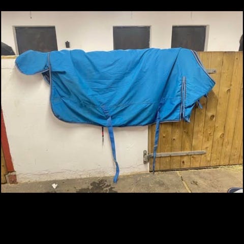 Fodrat Vintertäcke av märket Shire. Storlek 145. Fodrat med 300g och fast hals. Bra skick men otvättat.